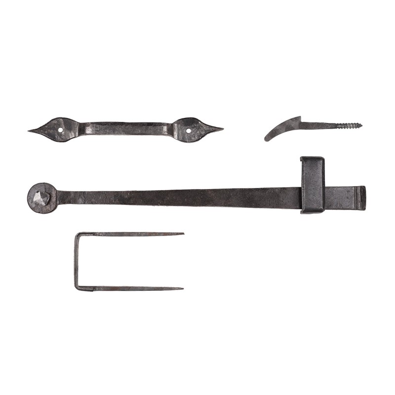 Dimensions 260 mm fer forgé épaisseur 5 mm livré avec vis de rotation, guide à piquer (par défaut) ou applique et mentonnet.